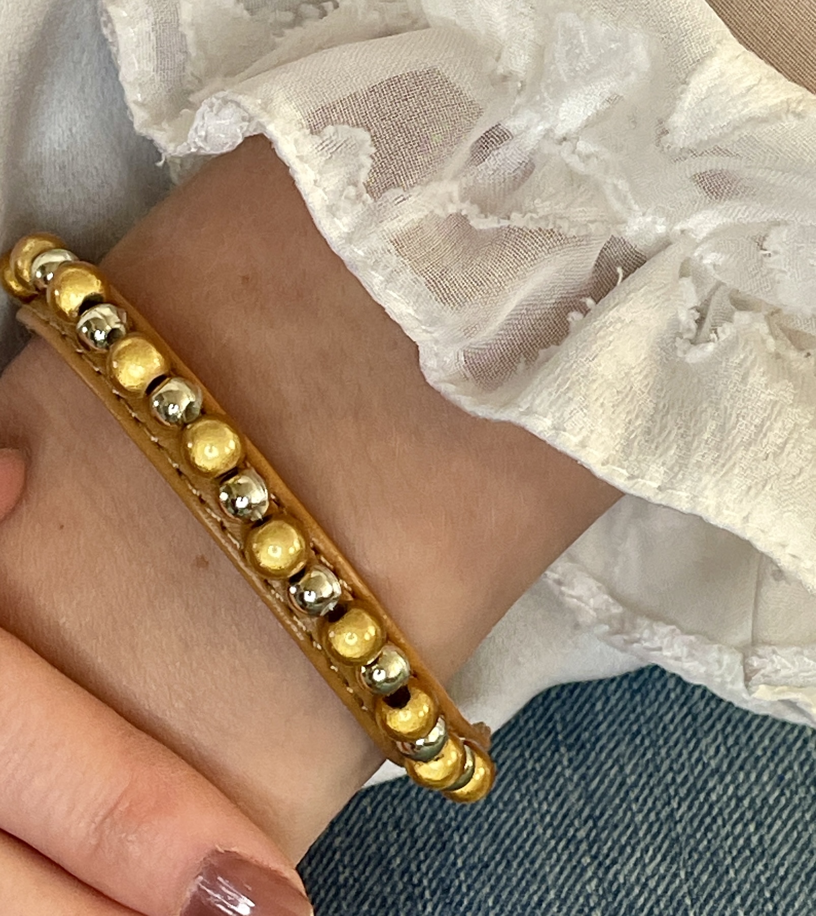 Light Brown strap – Honey Gold shine beads