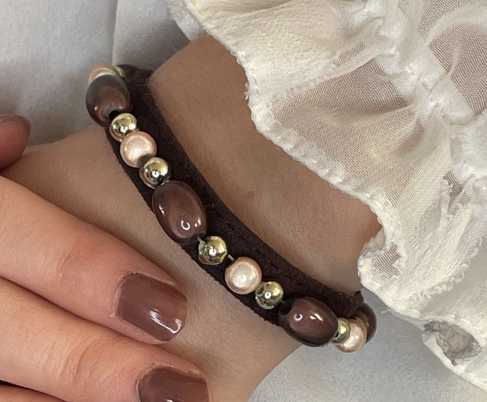 Light brown strap – Mint shine beads